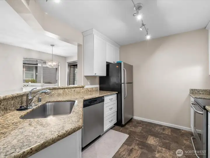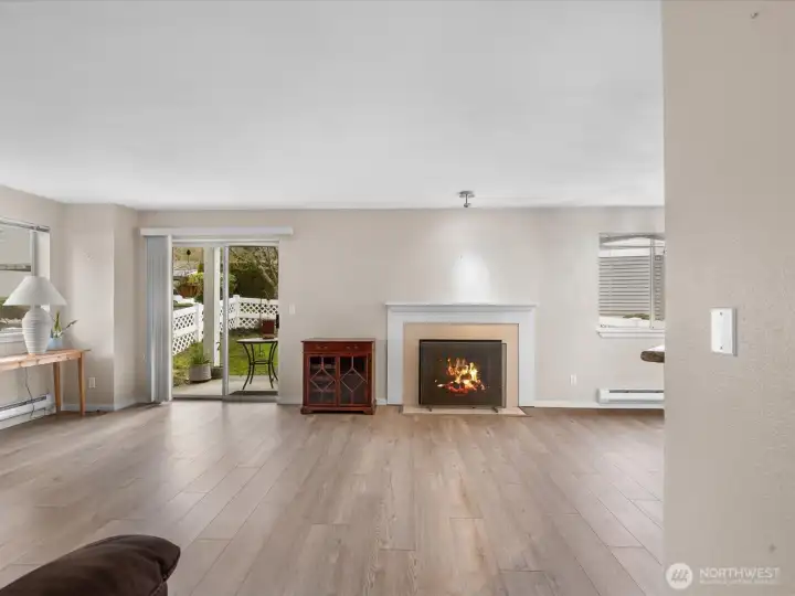 Tired of maintenance and stairs? Welcome to BRIO Condominiums this desirable ground-level unit offers no stairs and a private fenced back patio/small yard, perfect for pets and outdoor enjoyment. This spacious 3 bed, 2 bath bright home features an open-concept living, dining & kitchen area with a cozy electric fireplace w/remote control that can also be removed to enjoy wood fireplace instead, slab granite counters in Kitchen. Large primary suite with walk-in closet & master bathroom. Enjoy the convenience of reserved parking directly in front of unit plus 1 car garage with additional storage. Guest parking available with permit for your guest. The patio storage includes electricity ideal for an extra fridge or freezer. Located near the clubhouse with resort-style amenities including a pool, indoor hot tub, fitness center, kitchen, BBQ area, and play park. Prime location with easy access to I-5, Hwy 99, bus lines, and light rail minutes from Mukilteo, Boeing, Alderwood Mall, and Martha Lake. Bonus value: upcoming community improvements such as new siding, windows, and cabana repairs, offering excellent upside for the new owner.
