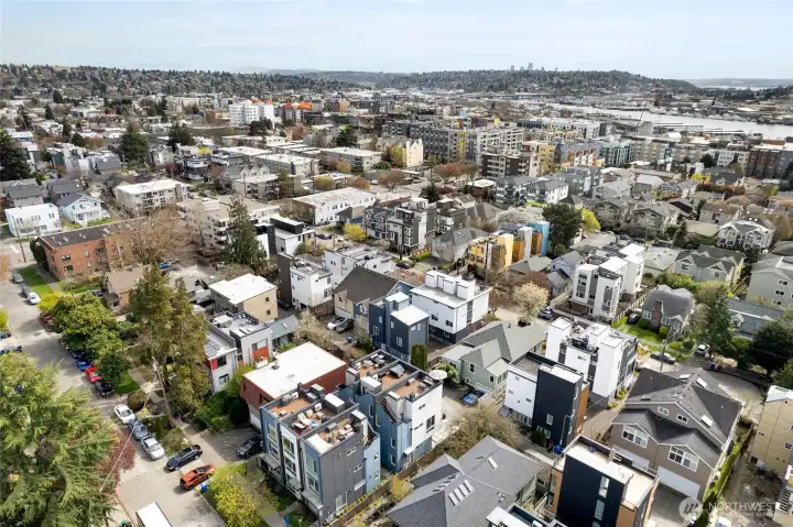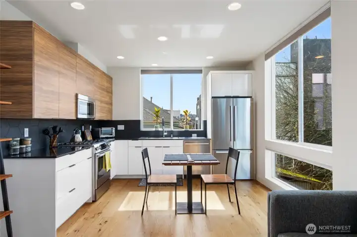 Sitting along a low traffic residential street just blocks from Ballard's bustling NW Market St and Ballard Ave, this better-than-new home awaits you. This lightly-lived-in home was purchased and fully equipped with custom window coverings and wash-dryer so it's next owner can take advantage of saving on those expensive items that builders do not include in new construction. Built by local homebuilder, Ashworth Homes, you'll appreciate quality craftsmanship, functional floorplan, and elevated finishes. Featuring open concept living, two bedrooms, two bathrooms, plus a rooftop deck with sweeping mountain views, perfect for entertaining or relaxing. With easy access to Ballard shops, restaurants, and amenities, along with a deeded off street, end-space parking spot and NO HOA.