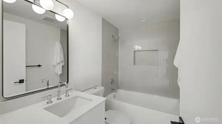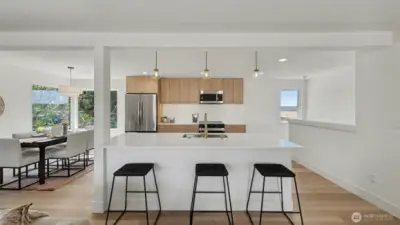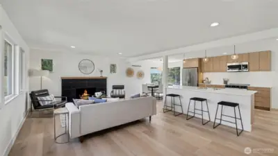 Welcome to Solara on Beacon — a stunning studs-out rebuild showcasing exceptional craftsmanship and modern design. The main floor offers a wide-open, light-filled floor plan where the spacious living room with tiled fireplace flows effortlessly into the dining area and chef’s kitchen featuring Belmont cabinets, a large island with breakfast bar, and new stainless steel appliances — perfect for everyday living and entertaining. Smart layout with two bedrooms upstairs and one downstairs, plus a cozy family room with brick fireplace. Beautifully tiled bathrooms and utility room. All new plumbing, electrical, lighting and finishes throughout. Alley access garage with abundant storage. Central Beacon Hill location with easy access to downtown Seattle, I-5, and light rail. Part of the Solara on Beacon collection with two additional new homes coming early 2027.