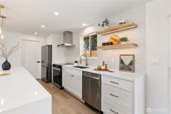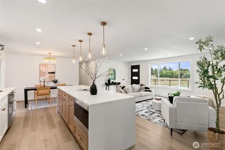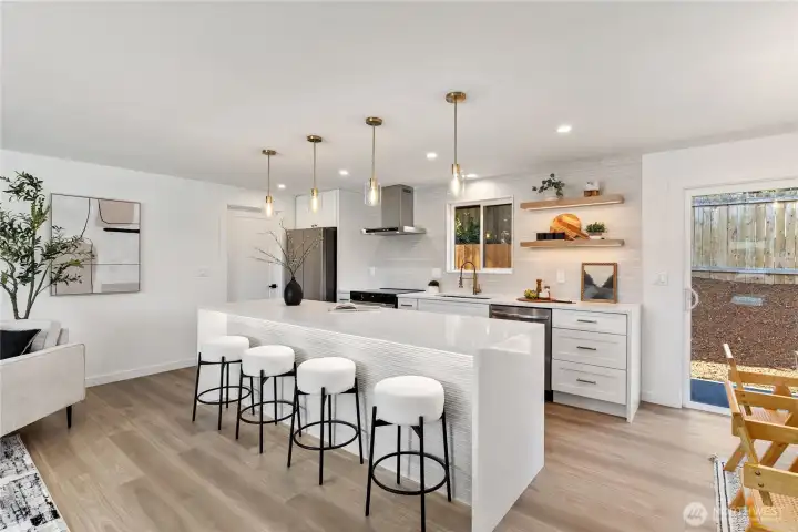 Experience refined living in this exquisitely upgraded Auburn residence, set on an expansive and exceptionally private lot—perfect for car enthusiasts or business owners seeking ample space for trucks, equipment, or recreational toys. Step inside to a light-filled open layout featuring a grand living room anchored by a sleek electric fireplace, creating a sophisticated yet welcoming atmosphere. The designer kitchen is a showpiece, boasting premium stainless steel appliances, a custom-color island with dramatic waterfall edges, floating shelves, and elegant under-cabinet and under-island lighting that highlight every detail. The primary suite is a serene retreat with a spacious walk-in closet and a spa-inspired bath, complete with illuminated mirrors, under-cabinet lighting, and a custom tile shower with a luxurious overhead rain feature. This home offers 3 bedrooms, 2 bathrooms, plus a finished flex room perfect for a private office, studio, or hobby space. A generously sized laundry room and a stylish guest bath with dual sinks and designer tile elevate everyday living. Outside, the partially fenced grounds provide privacy and endless potential for outdoor living or entertaining. The oversized 700+ sq ft garage delivers exceptional space for storage, hobbies, or a workshop, making this property a rare blend of luxury, functionality, and lifestyle. Close to freeways, shopping and parks. Must See!