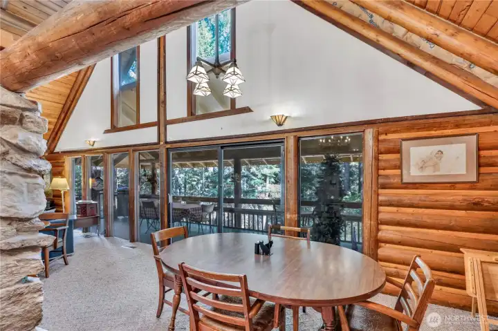 Escape to the Cascades with this iconic log cabin retreat offering rare income potential. Set on 0.79 acres near the Chiwawa River, this 3,362 sq ft home includes a rare transferable 10-person short-term rental permit, ideal for Airbnb or nightly rentals. The spacious layout is anchored by a dramatic two-story floor-to-ceiling stone fireplace, hand-built in 1972. A large kitchen opens to the main living areas, perfect for gatherings. Recent updates include new flooring, a brand-new roof, and a newly installed septic system for peace of mind. Enjoy the outdoors on the expansive deck with private sauna, surrounded by serene mountain setting. A unique opportunity for a personal retreat or high-performing rental.