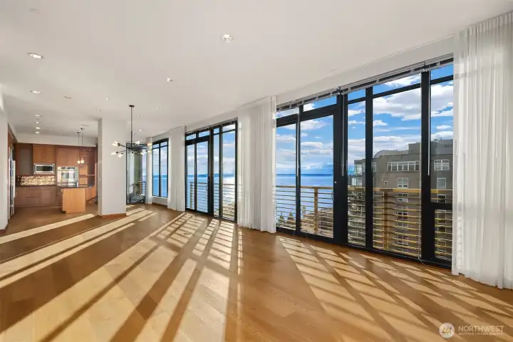 An extraordinary sub-penthouse offering a rare level of sophistication in one of Seattle’s most coveted waterfront enclaves. Just one block from Olympic Sculpture Park and the new waterfront esplanade, enjoy effortless access to top restaurants, cafés, shopping, and Pike Place Market—while tucked on a quiet, tree-lined street that feels like a true retreat.Designed for elevated living and entertaining, the home features floor-to-ceiling windows framing sweeping Sound views and stunning sunsets. High ceilings, hardwood floors, and A/C create a refined yet comfortable atmosphere. The chef’s kitchen is equipped w/gas range, Sub-Zero fridge, double oven, and oversized wine fridge, opening to spacious living areas and a private deck.The primary suite offers a serene escape w/2 walk-in closets, complemented by a hidden built-in office and sliding French doors. Additional highlights include in-unit laundry, 2 secured parking spaces, and storage.Amenities include concierge, fitness center, and a view terrace w/gas grill. EV-ready parking + car wash station. No rental cap, pet-friendly, 94 Walk Score—an iconic Seattle lifestyle at its finest!