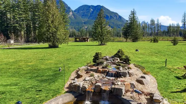 Discover your dream sanctuary in this exquisite 5-acre estate at the foot of the Cascade Mountains where you'll enjoy the peace, tranquility & breathtaking views of the Olympic Mountains. This beautifully crafted ranch home boasts over 2,700 square feet of living space adorned with rustic charm, featuring stunning fir floors & soaring vaulted ceilings. All interior mill work including the floors are sourced from the property. With 4 spacious bedrooms and 2.75 elegant bathrooms, including a luxurious spa bath, this home ensures comfort & style at every turn. Recent upgrades enhance this home with all-new appliances, newer water heater, furnace & heat pump for optimal climate control. Enjoy the peace of mind that comes with a whole house generator, surge suppressor & auto cut-off overload switches. Step outside to enjoy the serene surroundings this private retreat offers with zero light pollution, allowing you to fully appreciate the stars at night & connect with nature while relaxing in the hot tub, enjoy the sounds of the pond & waterfall that is home to 4 large Koi & 30 plus other goldfish varieties or sitting around the firepit under the stars. The Goldbar area is known for its proximity & variety of hiking, fishing, camping, the Skykomish River & Stevens Pass. Don’t miss this opportunity to embrace the serene lifestyle in a home that perfectly blends modern comfort with natural beauty!