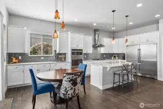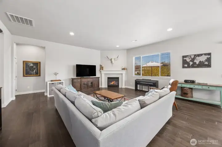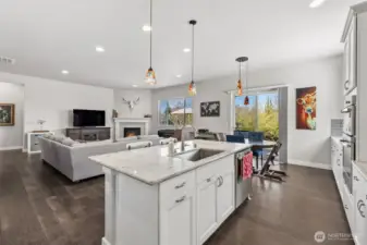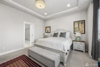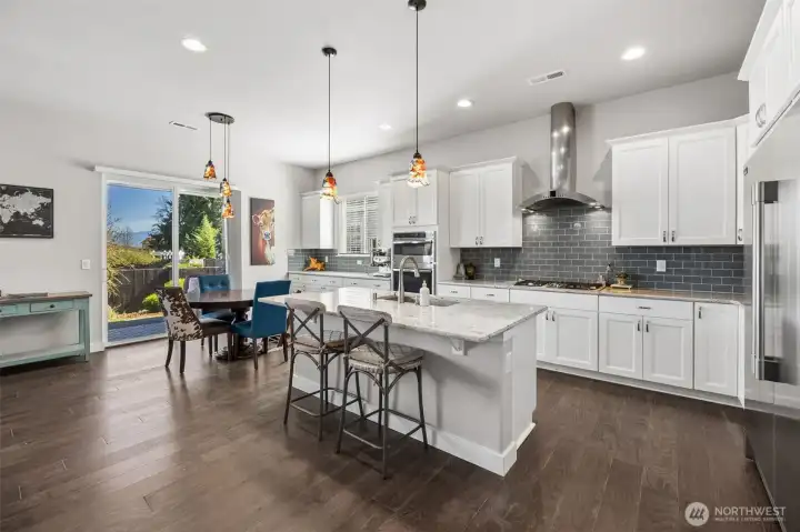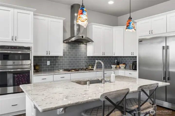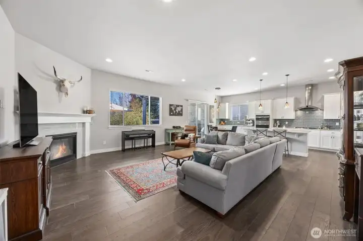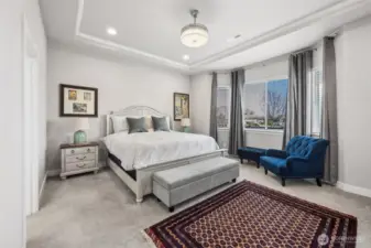 Welcome home to this meticulously maintained single-story residence on a quiet cul-de-sac in Puyallup’s desirable Sunrise community. Boasting approximately 2,366 square feet, the home features three bedrooms, two bathrooms, and a dedicated office. The open floor plan offers high vaulted ceilings and designer lighting. The chef-inspired kitchen includes an oversized island, walk-in pantry, generous cabinetry, and a large stainless steel refrigerator. The great room centers on a cozy gas fireplace and opens to a covered outdoor living space with a second built-in gas fireplace, gas BBQ hookup, power sun shade, water feature, and inspiring Mount Rainier views—perfect for year-round entertaining. The primary suite includes a five-piece bath with soaking tub and a spacious walk-in closet. Additional features include a three-car garage with built-in shelving, pre-wiring for generator and EV charger, storage shed with workbench, zoned sprinklers, and wired exterior security. Enjoy community walking paths, parks, playgrounds, and an activity center in this highly sought-after neighborhood. This move-in-ready home combines quality finishes with smart functionality. Schedule your private tour today.