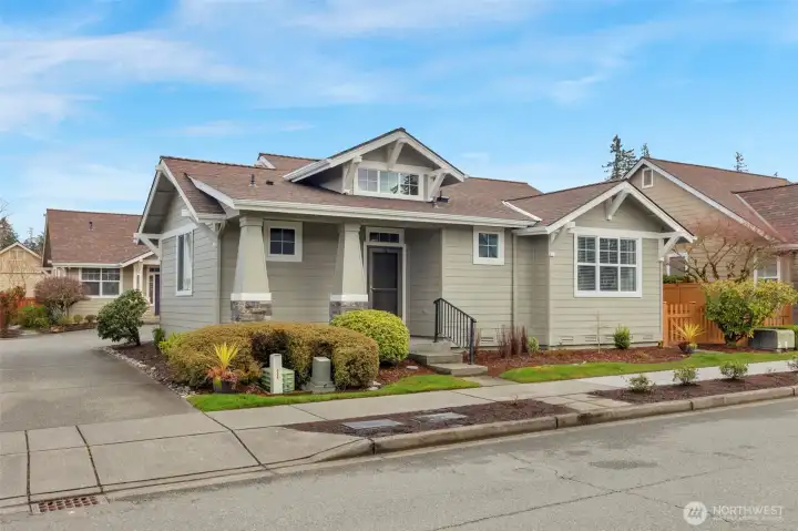 Welcome to easy, elevated living in Trilogy at Redmond Ridge. This charming Angeles floor plan lives larger than its footprint, offering a bright and open great room design filled with natural light. The spacious kitchen opens effortlessly to the living area with cozy gas fireplace, while the secondary bedroom offers exceptional flexibility with a custom built-in workstation and Murphy bed. Situated on a flat, sunny lot just 1.5 blocks walking distance to the clubhouse, this home offers both convenience and comfort in one of the community’s most desirable locations. Outside, enjoy a sunny private patio perfect for morning coffee or quiet evenings. Complete with central A/C, skylight, generous storage, and a 2-car garage, this home has been thoughtfully updated with approximately $75,000 in recent improvements, including a new roof, offering peace of mind and truly turnkey living.