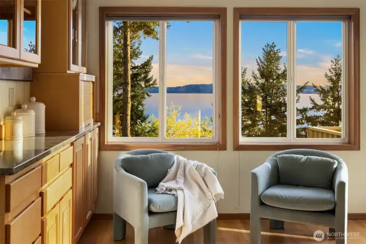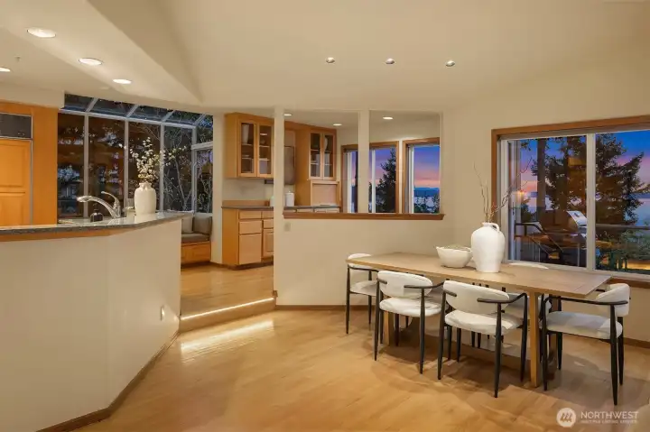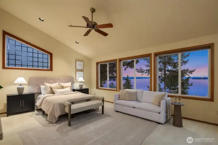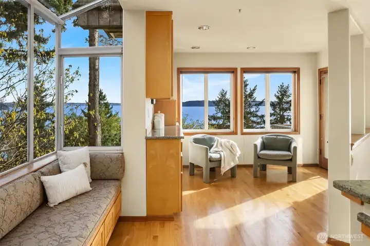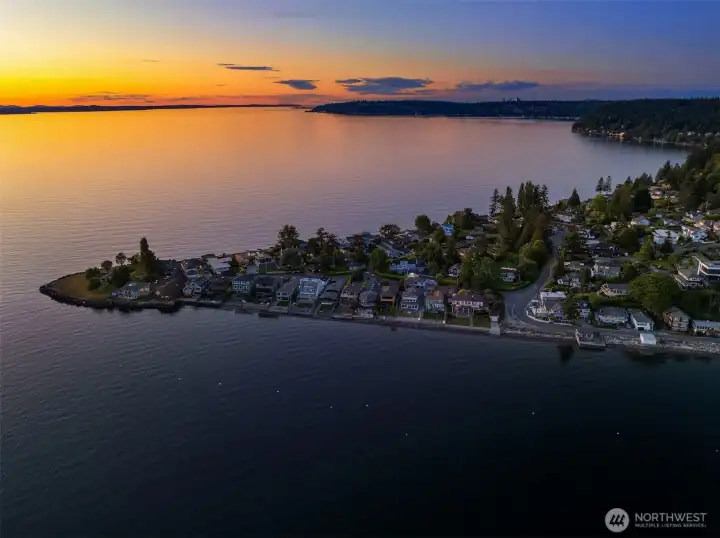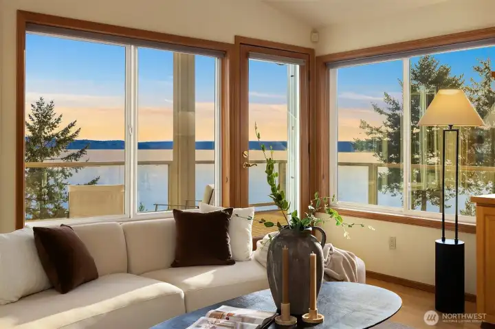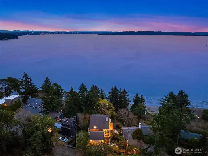 Welcome to Three Tree Point with this Northwest retreat blending privacy, light & striking views. Set on a serene residential street along homes all treasuring their panoramic vistas & steps to the Indian Trail leading the beach, the property offers a waterfront lifestyle. A vine pergola frames the main entrance inviting guests in, amidst delightful scents of blossoms & firs. Inside, hardwoods floors, graceful lines & masterful craftsmanship - including a sculptural custom staircase- set an inviting, artful note. Designed for connection & ease, the house offers practicality, aesthetics & a captivating Mt Rainier, islands & Puget Sound backdrop. Enjoy daily life on the main floor which extends into a spacious outdoor living area for barbecues & morning coffee. The upper-level primary suite w/ its eagle’s nest feel unfolds into a generous bedroom, spa bathroom, walk-in closet and den – ideal retreat for work, reading or creative pursuits. The daylight, ground level provides 2 additional bedrooms plus a large rec room/library w/ fireplace, creating flexible space for guests, hobbies, or extended living. Layered decks & patios foster a natural flow between interior & exterior, stepping down to lush gardens & built-in vegetable beds: a haven for gardeners & nature lovers. 2-car garage + 2 additional off-street parking spaces & ample storage. A peaceful sanctuary for art, music, nature, minutes to Olde Burien shops & restaurants + a short drive to Sea-Tac International Airport.