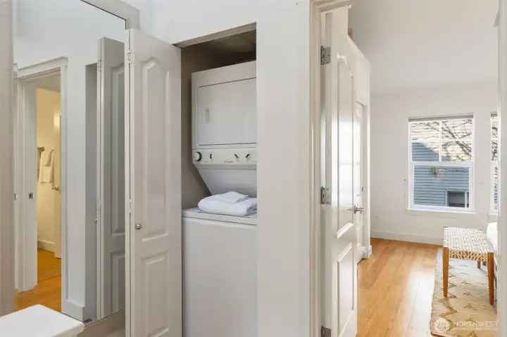 JUST REDUCED! This well-designed townhouse-style condo represents exceptional value in a prime Madison Valley location. Vaulted ceilings, an open floor plan, and a skylight create a spacious, airy feel, complemented by bamboo hardwood floors on both levels, along with tasteful crown molding and classic base trim work. The open kitchen features tile flooring, abundant cabinetry, granite countertops, gas cooking, and an eat-in bar. The living room centers around a cozy gas fireplace and opens to the back deck, bringing in natural light and fresh air. A convenient powder room is located on the main level. The upper level features two bedrooms and two baths, plus a versatile loft area well-suited for a lounge space or home office. Efficient hydronic heat provides comfortable, even warmth. Additional highlights include a secure parking space in the common garage, a dedicated storage area, no rental cap, and a small, well-managed HOA. New roof in 2023. With a Walk Score of 92 (Walker’s Paradise), you’re just two blocks from Madison Valley’s popular restaurants and shops, with easy access to Pike/Pine, bus routes, light rail, streetcar, SLU, UW, Downtown Seattle, and the Eastside. Several nearby grocery options, including Trader Joe’s and Safeway, add everyday convenience. Outstanding value in an exceptional location!