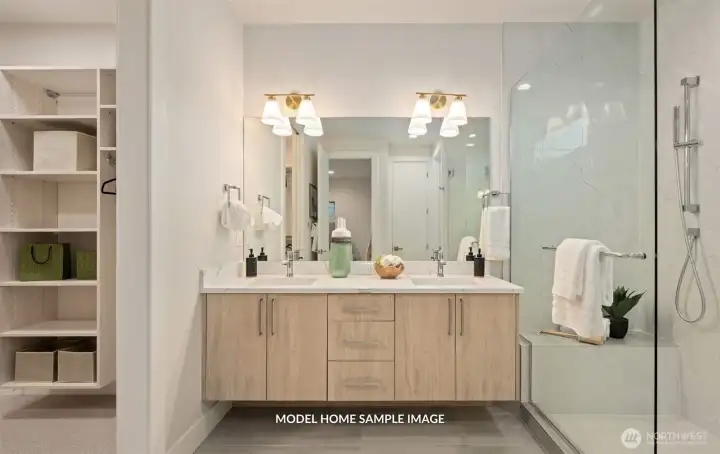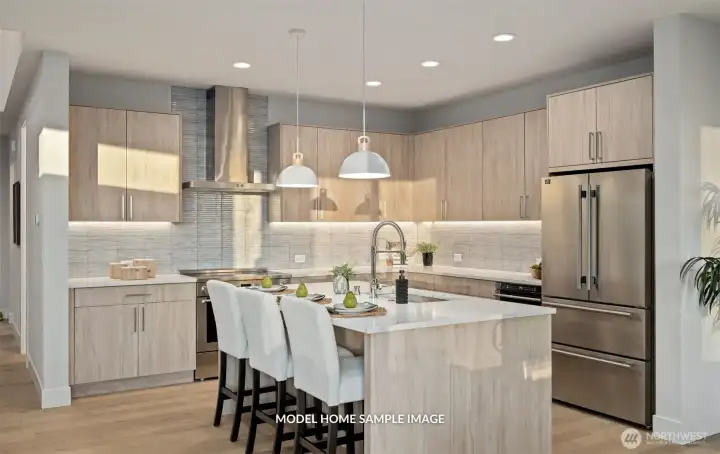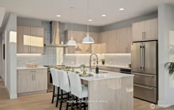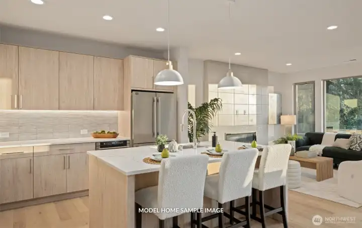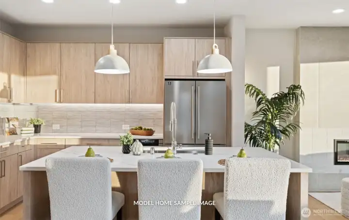 Merit Homes presents Wilder Lot 1! The 4-home community in desirable rose hill offers this thoughtfully designed two-story floorplan offering a reduced footprint without sacrificing luxury or livability. This home features 3 bedrooms, 2.5 bathrooms, a bright, open layout, and an attached EV-ready garage. Step inside to a light-filled open-concept main level ideal for both everyday living and entertaining. The gourmet kitchen showcases a quartz slab island with bar seating, custom soft-close cabinetry, dual-zone wine chiller, and a premium appliance package highlighted by an induction range. The great room is warm and inviting with a sleek contemporary linear electric fireplace and seamless access to the outdoor patio. A stylish powder bath completes the main floor, perfect for guests. Upstairs, the primary suite is a true retreat, filled with natural light and featuring a spa-inspired walk-in shower with bench seating and dual shower heads, plus a walk-in closet with custom shelving. Two additional bedrooms provide ample space, complemented by a full secondary bathroom and a well-appointed laundry room with quartz countertops and upper and lower cabinetry. Ideally located for effortless commuting with quick access to major employers including Microsoft, Meta/Facebook, Amazon, and EvergreenHealth. Enjoy close proximity to Kirkland Costco, The Village at Totem Lake, parks, walking trails, and top-rated schools.
