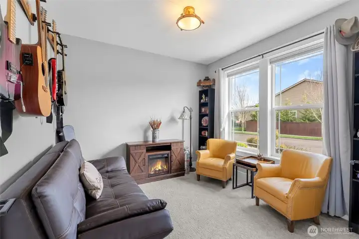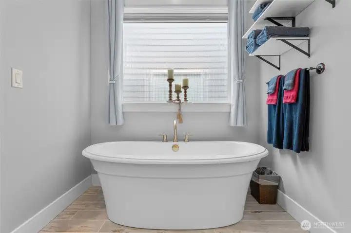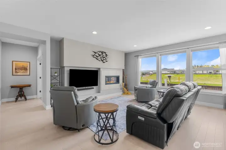 There’s something special about a home that was never just built—but designed to be felt. Welcome to 4628 S 16th Dr in Ridgefield’s coveted Seven Wells Estates, where this former Pacific Lifestyle model home blends elevated design with effortless, everyday living. Light-filled and inviting, the open-concept great room centers around a stunning designer fireplace wall—perfect for cozy nights or gathering with loved ones. The kitchen is a true showpiece, featuring crisp white cabinetry, quartz countertops, BI appliances, double ovens, and a sleek oversized island made for connection and conversation. Main-level living shines here, with a private primary suite offering a spa-like retreat—dual vanities, a walk-in tile shower with dual heads, glass enclosure, and a luxurious standalone soaking tub. A dedicated office on the main provides the perfect work-from-home space, while upstairs, a spacious bonus room offers flexibility for media, guests, or play. Step outside to your covered deck, where a striking stone fireplace creates year-round outdoor living. Overlooking thoughtfully designed landscaping and a beautifully placed yard, plus views of Mt Saint Helens, it’s the perfect setting to unwind or entertain. Refined yet welcoming, every detail has been curated to create a home that lives as beautifully as it looks—where comfort meets sophistication and every day feels just a little more inspired.