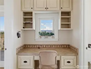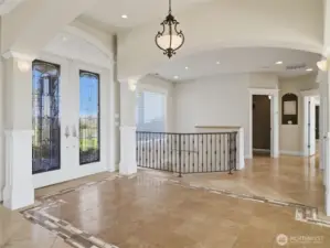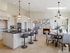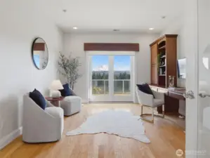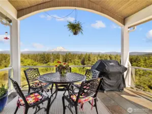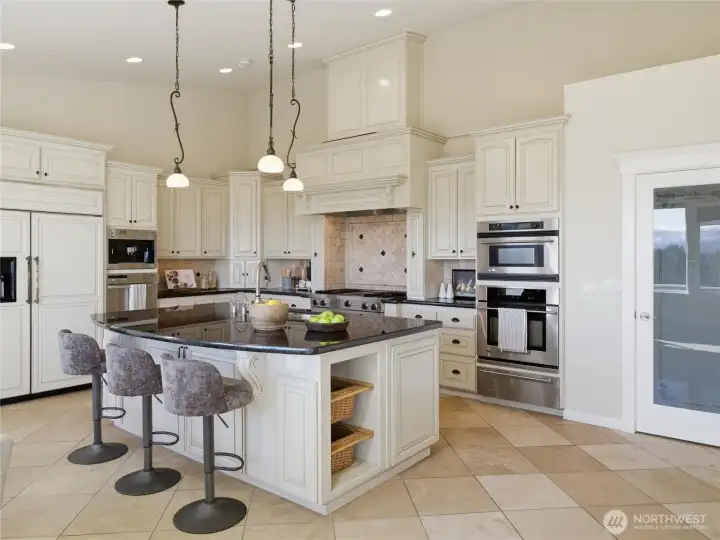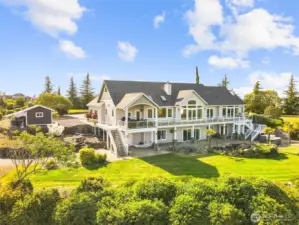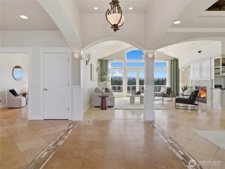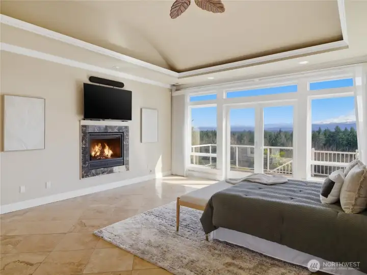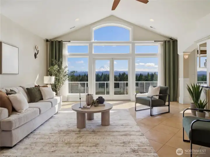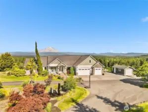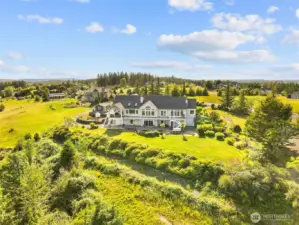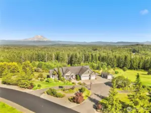 Live above it all in Kinsman Court, a gated community featuring luxurious estates and unmatched panoramic views of Mt. Rainier, the Olympics, and the Cascades. This 4,500+ sq ft home on nearly 10 acres offers 3 bedrooms plus an office (potential 4th), 3.75 baths, and a main-floor primary suite designed as a private retreat with a fireplace, jetted tub, steam shower, and stunning mountain vistas.The chef’s kitchen is appointed with granite slab counters, high-end built-in appliances, custom panel-ready finishes that seamlessly conceal appliances for a refined, cohesive look, and radiant-heated travertine flooring. Thoughtfully designed for comfort and entertaining, the home also features a theater room, dual laundry on main and lower levels, A/C, remote blinds, and a built-in vacuum system. The secondary bedrooms are thoughtfully designed as junior suites, each featuring walk-in closets and private attached bathrooms, offering comfort and privacy for guests or multi-generational living. Additional highlights include RV hookups and a generator with automatic transfer for peace of mind. Professionally landscaped grounds showcase water features, a hot tub, and a full sprinkler system—creating a serene outdoor oasis. Luxury, privacy, and views—this home truly has it all.