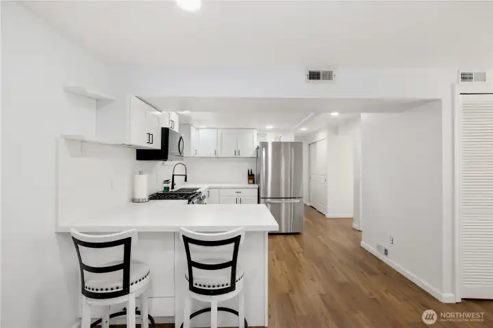 Fully remodeled 5-bedroom, 3-bath home in Auburn offering stylish updates and versatile living space throughout. The main level welcomes you with a bright living room featuring a cozy fireplace that flows seamlessly into the dining area and kitchen. Enjoy stainless steel appliances, modern backsplash, abundant cabinetry, and generous counter space ideal for everyday living and entertaining. Upstairs features three bedrooms, including a spacious primary suite with en-suite, an additional full bath, and a convenient laundry area. The lower level offers exceptional flexibility with its own separate French door access, second kitchen, large living area with fireplace, two additional bedrooms, full bath, and separate washer and dryer setup. This space is perfect for potential extra income, guests, recreation, home office needs, or multi-purpose use. Outdoor living shines with a covered deck, hot tub, two patios, fully fenced yard, and storage shed. Attached garage and gated driveway entry add convenience. Prime location with quick access to I-5, light rail, shopping, dining, parks, and everyday amenities.