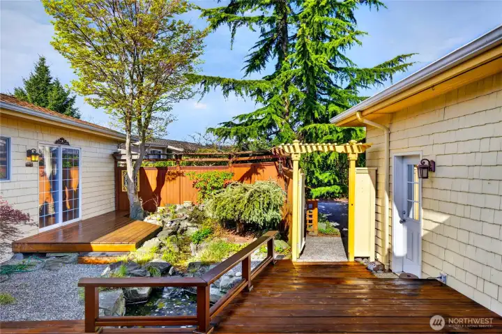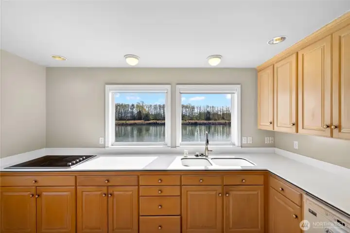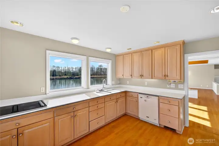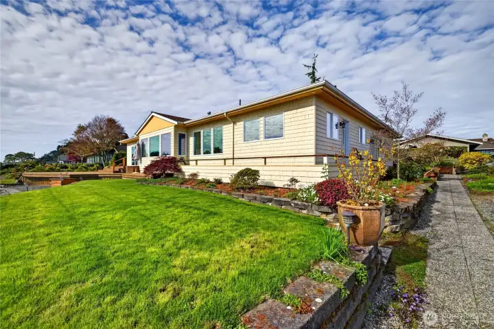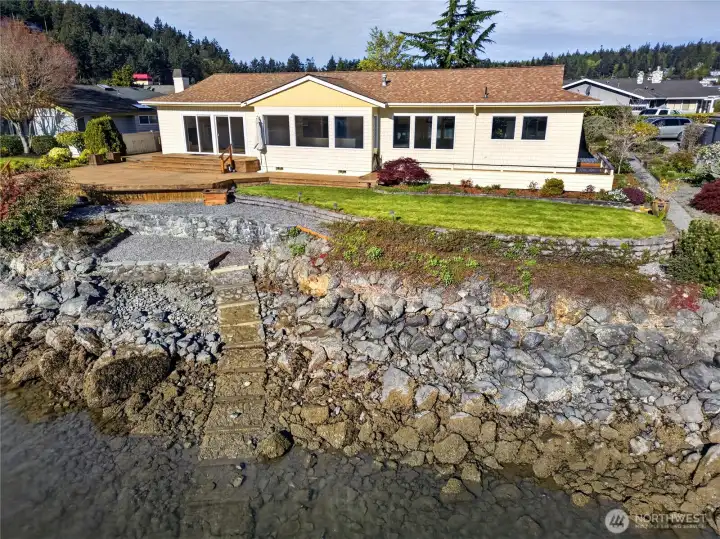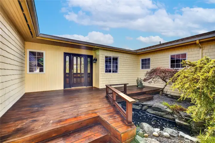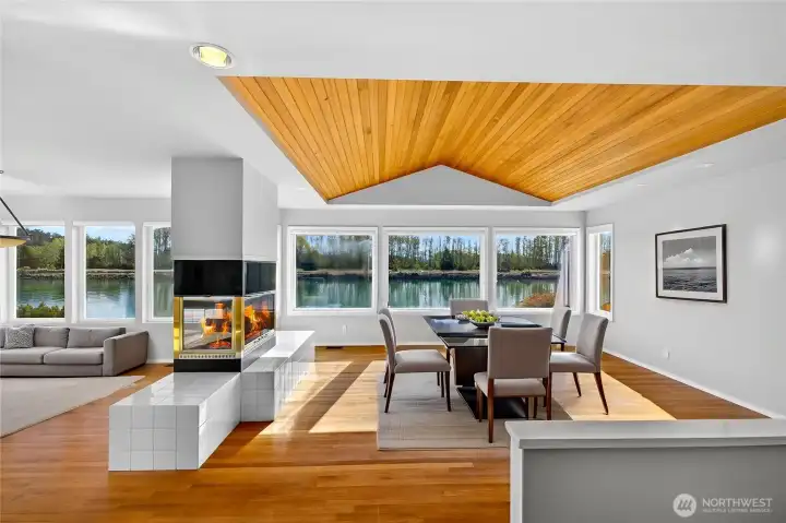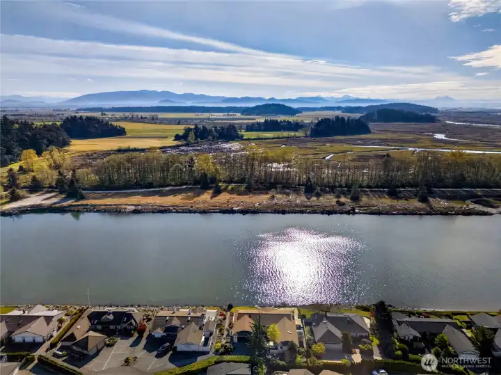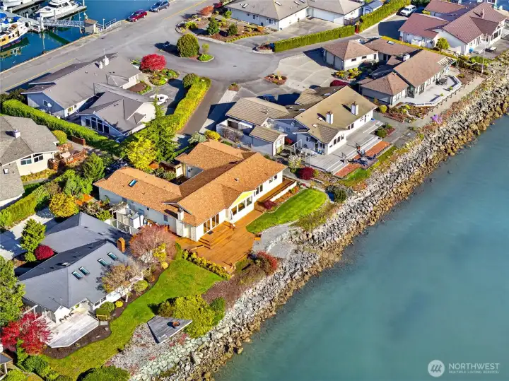 Experience true waterfront living in this beautifully positioned Shelter Bay home with direct access to the water and sweeping channel views. Step outside to your expansive deck and shoreline—perfect for kayaking, paddleboarding, or enjoying the calm scenery right from your backyard. Inside, large picture windows frame the water from the main living spaces, filling the home with natural light. The open layout flows effortlessly, highlighted by warm hardwood floors, a wood-accent ceiling, and a double-sided fireplace that creates a cozy focal point between the living and dining areas. The kitchen offers ample storage and workspace while staying connected to the main living areas and water views—ideal for everyday living or entertaining. Multiple sliding doors lead to the deck, creating seamless indoor-outdoor living. Enjoy sunset evenings on the spacious courtyard-style deck, featuring a tranquil pond and landscaped stream that enhance the peaceful setting. Located in a quiet waterfront community, this home offers a blend of tranquility, lifestyle, and convenience—minutes from the charming town of La Conner, yet feeling like a private retreat. For boating enthusiasts, you’re approximately 200 feet from the Shelter Bay marina and moorage—an exceptional opportunity for easy water access. Shelter Bay also offers favorable financing options for leased land properties. This is your chance to own a slice of waterfront living in the Pacific Northwest..**Leased Land**