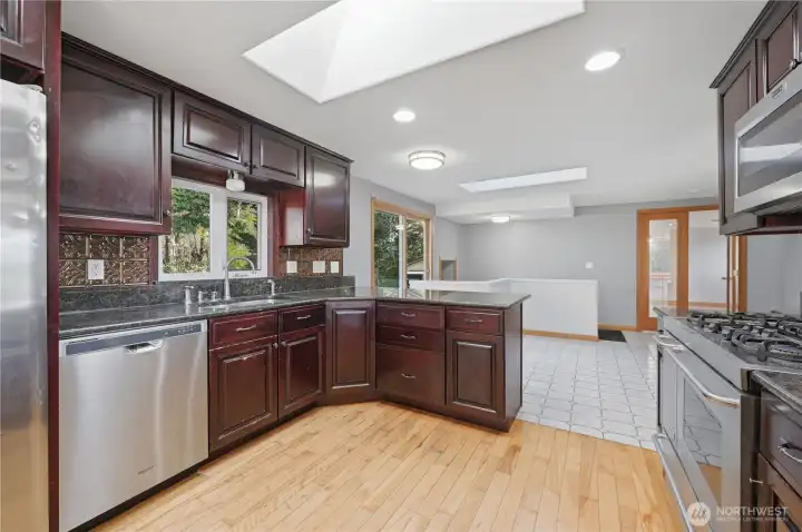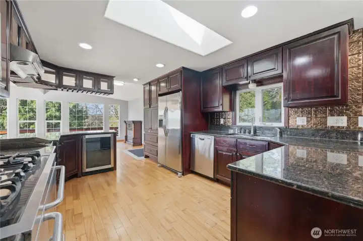 Wake up to water views of the Sound from this 5 bed, 4 bath, 2,664 sq ft home set on a generous lot in a quiet coastal community just minutes from the Lummi Island Ferry and a short drive to Bellingham. The main level features a beautifully appointed kitchen with granite counters, custom cherrywood cabinets, high end stainless appliances, and real hardwood floors, with abundant windows bringing in natural light and views. Multiple living spaces and the primary suite enjoy beautiful sunset and water views, while the expansive deck offers the perfect place to unwind. The lower level lives like a fully self contained unit with its own entrance and driveway, 3 beds, 2 baths, and a second kitchen, ideal for Airbnb, rental income, or multi generational living. Recent updates include a new roof in 2023 and water heater in 2025. Shared waterfront access with a sandy beach is a short walk away, with easy access to kayaking, clamming, and more. Ample parking includes space for an RV with dump hookup, boat, or toys, plus a nearby bus stop and just 5 minutes to the casino.