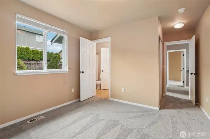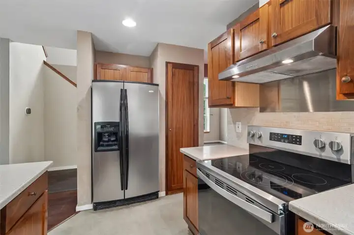Welcome home to this impeccably maintained 3 bedroom, 2.5 bath two-story residence designed for both elegance and comfort. The main level greets you with sophisticated formal living and dining rooms, leading into a spacious gourmet kitchen featuring premium Corian countertops, rich walnut cabinetry with soft-close drawers, a pantry, and a center island. The open-concept family room creates an inviting atmosphere with its cozy gas fireplace and durable bamboo hardwood floors. Retreat to the expansive primary suite, a private oasis boasting a luxurious five-piece bath and a spacious walk-in closet. Upstairs, two additional well-appointed bedrooms share a convenient dual-vanity bathroom. Modern essentials abound with central AC for year-round comfort, solar panels for energy efficiency and a sprawling three-car garage, and a beautifully landscaped yard perfect for outdoor enjoyment. Combining sophisticated finishes with a functional layout, this home is ready for you to move in and enjoy!