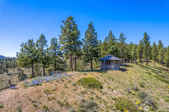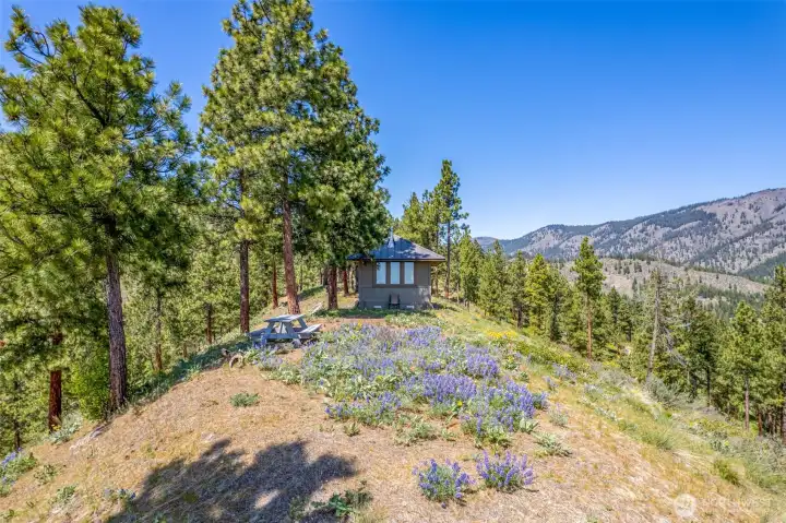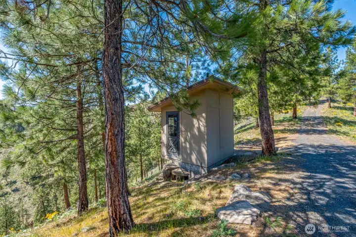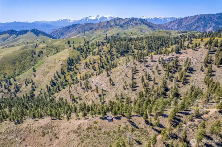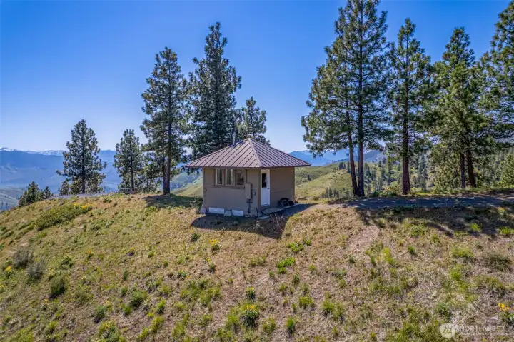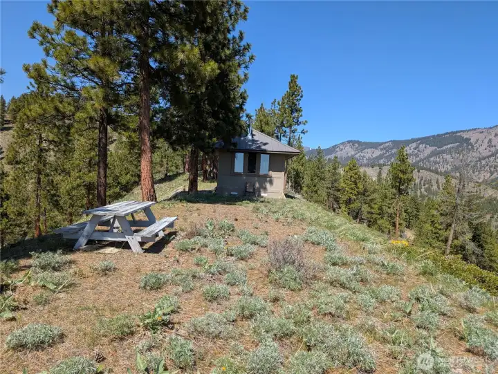 Take a moment to imagine yourself in this serene location with the sounds of nature all around you. This very private and well equipped cabin in the woods is ready for your next adventure. With nearly a 360 degree view of mountains and forest you will never run out of the next breathtaking moment. Vaulted ceiling, metal snow roof, built to withstand the elements of Central Washington. This cabin comes with power. No need to rely on solar or generators. Simply plug in! With power you have heat and a portable A/C unit with through wall port ready to cool when needed or heat things up. With a separate structure there is a composting toilet close by, with separate storage or even a couple of places to throw sleeping bags.