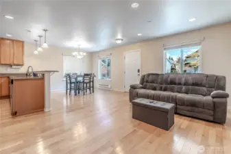 Welcome to NW Landing! This thoughtfully designed 4-bedroom, 1,852 SF home checks every box. Hardwood floors flow through the main level, with an open-concept layout that feels both spacious and inviting. The kitchen shines with stainless steel appliances and granite countertops. It's perfect for everyday living and entertaining alike. Working from home? The main-floor bedroom is a dream setup. Tucked away from the main living areas with its own private entrance to the fully paved backyard. Upstairs, two generously sized bedrooms, a versatile bonus nook, convenient laundry, and a full bath in the hall round out the layout. The primary suite features a large walk-in closet you'll actually love and an ensuite bathroom. NW Landing offers a plethora of parks, open space, and over 12 miles of trails and bike lanes right outside your door. Conveniently located close to JBLM