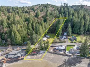 Welcome to your Hood Canal retreat—where dreams become lifelong memories. Set on nearly 1.5 acres with 100 feet of waterfront, this rare offering includes two parcels, allowing for future expansion or the creation of a custom estate. Enjoy sweeping Olympic Mountain views, golden late-afternoon sun, and the peaceful rhythm of waterfront living. A covered front porch invites you to slow down and take in the natural beauty that surrounds you. Spend your days harvesting oysters and clams from your own shoreline, kayaking or boating along the canal, or simply relaxing as the tide rolls in. Expansive grounds provide space to gather, unwind, and entertain, with room for campfires, outdoor dining, and creating unforgettable moments with family and friends. Ample parking is a true rarity on the coveted South Shore, offering added convenience for hosting and everyday living. Ideally located near Alderbrook Resort and at the gateway to the Olympic Mountains, this is a timeless escape, full-time residence, or investment opportunity in the heart of the Pacific Northwest.