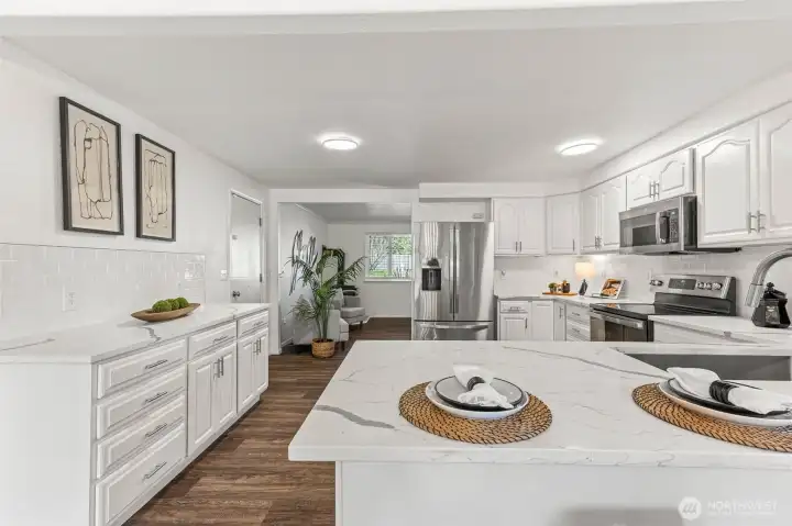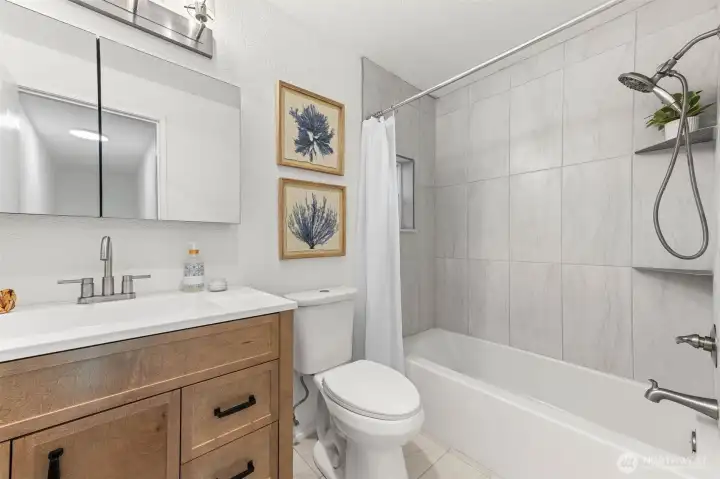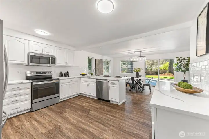 Located in the highly sought-after Lake Forest neighborhood, this home offers access to an incredible community with private Long Lake access, dock, boat launch, trails, dog park, and a neighborhood park and pavilion for residents to enjoy. This neighborhood truly offers an exceptional lifestyle. Set on just under a 1/3 acre, the fully fenced property features fresh exterior paint (2026), a sport court, and garden space ready for you to make your own. The fully covered front porch is perfect for enjoying the beautiful front yard trees on a rainy day. Inside, the cozy living room opens to a very large updated kitchen with brand new appliances (2026), brand new countertops, and freshly painted cabinets, along with a dining space that flows seamlessly to the backyard, creating effortless indoor-outdoor living at its finest. Whether you're entertaining or enjoying a slow evening at home, the layout just works. The home features 3 bedrooms plus a flexible additional space ideal for an office, additional bedroom, playroom, or whatever fits your lifestyle. The upstairs primary bedroom is generously sized, offering a private retreat with plenty of space to unwind, along with a large walk-in closet. The garage includes additional storage space at the back, perfect for a shed area, backyard supplies, or whatever fits your needs. Updated bathrooms and thoughtful improvements throughout make this home both functional and inviting. A must-see in one of the area’s most loved neighborhoods.
