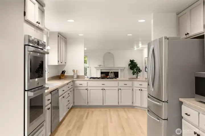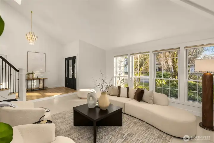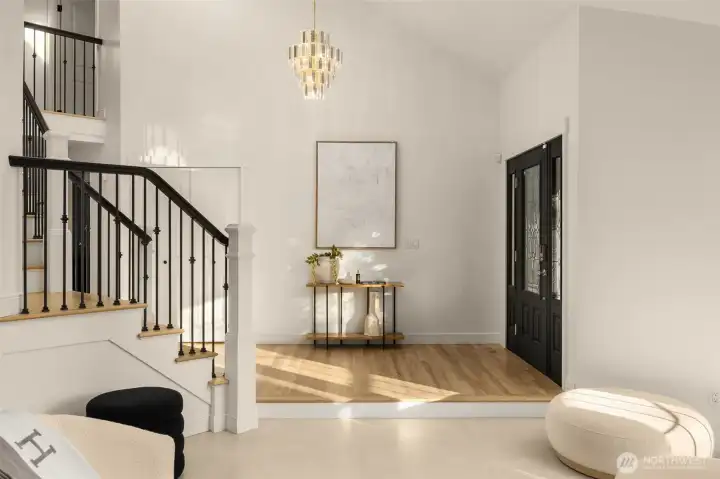 Updated Murray Franklyn on a rare ~10,000 SF lot with no rear neighbors—private, move-in ready, and tucked on a quiet cul-de-sac. Spanning 2,860 square feet, the home showcases rich white oak hardwoods throughout (no carpet), custom millwork, and thoughtfully updated finishes that create a warm yet elevated feel. The expansive kitchen features sleek cabinetry, quartz counters, and premium stainless appliances, flowing seamlessly into inviting living and dining spaces. A grand wrought-iron staircase makes a striking first impression. Upstairs, the luxurious primary suite offers a serene retreat with a spa-inspired ensuite and dual walk-in closets, while each bathroom has been tastefully remodeled with high-end finishes. The backyard is a true standout—lush, private, and generously sized, with an entertaining patio and ample space to relax, play, or host gatherings. Additional upgrades include a new furnace and water heater, cedar siding, central A/C, and a sprinkler system, plus the added confidence of a pre-inspection. Located in highly desirable Klahanie with access to pools, parks, sports courts, and miles of trails—this is the lifestyle you are searching for.