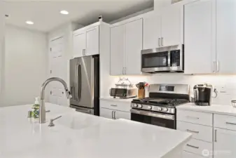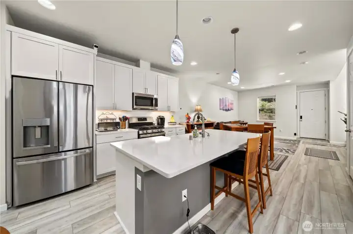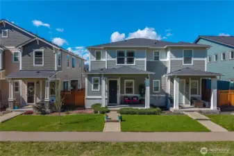 Situated on a private greenbelt lot, this beautifully appointed home offers 3 bedrooms, 2.5 baths, and a 2-car garage with EV charging capability. Thoughtfully designed with both style and comfort in mind, the home features premium finishes throughout, including quartz countertops in the kitchen and baths, stainless steel appliances, and an apron-front undermount sink. Bright, spacious bedrooms provide a welcoming retreat, while the primary suite offers a private en-suite bath for added comfort. Central A/C ensures year-round comfort, especially during warm summer days. Located in the sought-after Tehaleh community, residents enjoy access to miles of scenic trails, parks, playgrounds, and stunning natural surroundings. This is an exceptional opportunity to enjoy modern living in one of Bonney Lake’s most desirable communities.