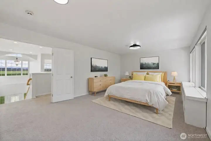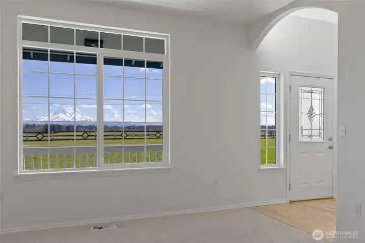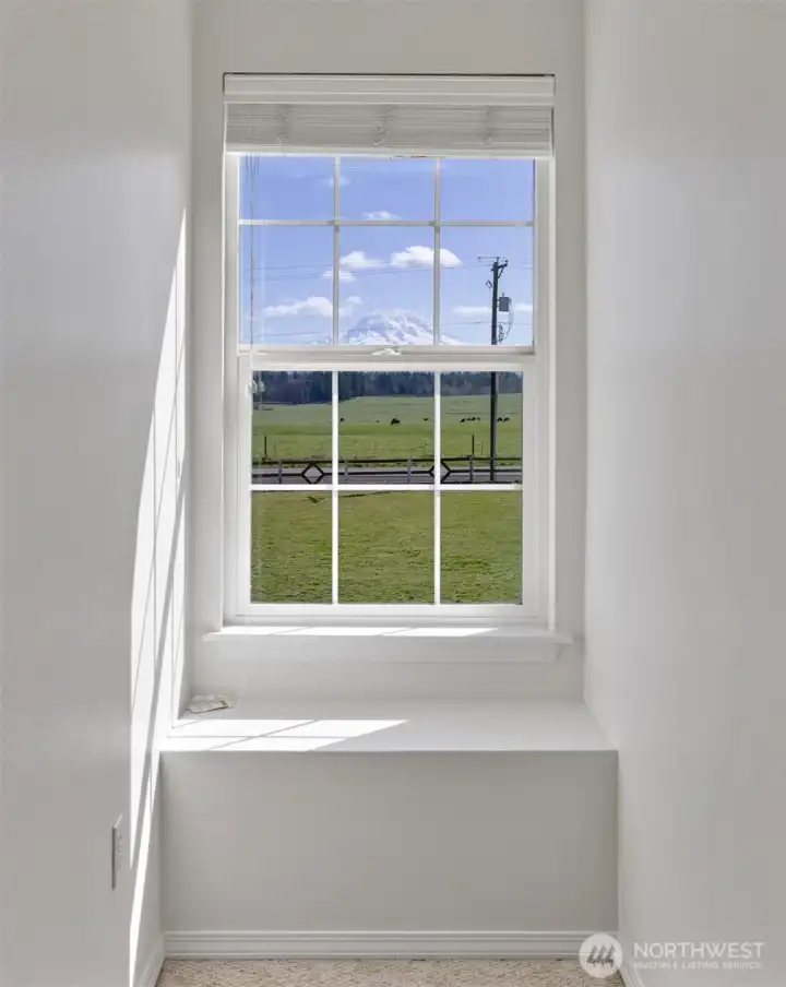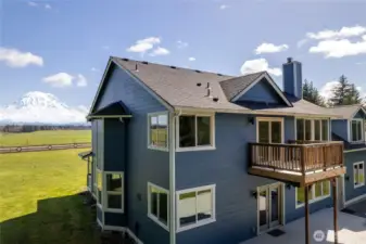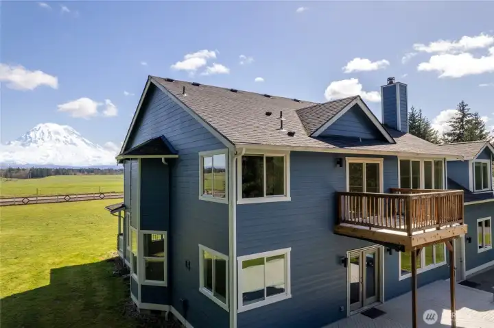 Nestled on 11.5 acres with approximately 3 acres fully fenced, this stunning 3,270 sq ft home offers breathtaking mountain views from nearly every room! The thoughtfully designed floor plan features soaring ceilings in the entry and tons of natural light. There's a living room, dining room and spacious great room with cozy woodstove, river rock surround and built-ins. The kitchen includes solid surface counters, hardwood floors, stainless-steel appliances, big walk in pantry, bar seating and a breakfast nook. French doors off the great room open to the large back deck. The main level also includes a den, utility room and convenient half bath. Upstairs, retreat to the expansive primary suite with private deck, large 5-piece bath and an oversized walk-in closet. Two additional bedrooms, a full bath with dual vanity and a large bonus room provide plenty of space for everyone. Fresh interior paint with the added bonus that buyer can choose new carpet at sellers expense! Peace of mind with newer exterior paint and roof, both within the last 5 years. Enjoy outdoor living at its finest with the large private deck for entertaining, a covered BBQ area, plus firepit with a million-dollar view! The property also includes a barn out back and a shipping container workshop with 220-volt service—perfect for hobbies or projects. Peaceful country living with easy access to JBLM Roy gate, just 10 minutes to Yelm, 30 minutes to Tacoma, and 45 minutes to Olympia/Lacey.