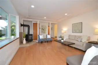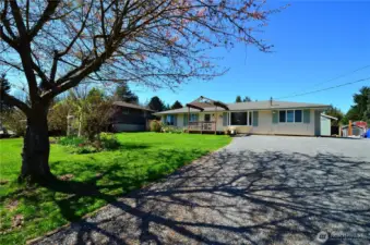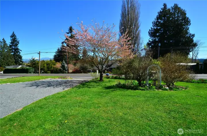 Beautiful remodeled 3 BR + office 2 bath rambler with Cascade mountain & sunrise views. Large 1/4 acre lot with stunning backyard. You're going to love the private long glass covered back patio, great for entertaining, BBQing year 'round, and enjoying morning coffee while bird watching and relaxing. Delight in the flowers, gardening beds, fruit trees, flat lush grass backyard, front porch trellis & sitting area. The brand new kitchen awaits your daily enjoyment, featuring new cabinets, handles, quartz countertops, sink & faucet, lighting & flooring. This lovely well maintained home has many features including updated bathrooms, brand new carpet, fresh interior & exterior paint, large bay window and comfortable gas stove in living room, updated vinyl double pane windows and slider, cute & functional shed, multiple exterior tool/storage closets, new soffits, 1.5 year old H2O tank, 8 year old 30 year roof, and RV/boat parking on side of house. Great location and easy access to cute downtown Snohomish shops, bakeries, farms, restaurants, walking trails and more.