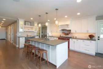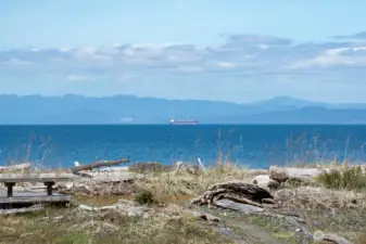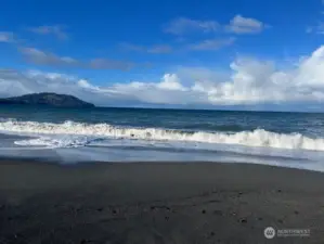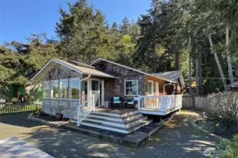 Extensively remodeled in 2018, this one-level beachfront home occupies a prized section of Place Road where the Elwha River meets the Strait of Juan de Fuca. Enjoy miles of beachcombing, surfing, wildlife, and ever-changing coastal views from this rare offering with direct beachfront access. Inside, the home blends warm coastal-modern style with quality craftsmanship, featuring hardwood floors, a stone-wrapped wood-burning fireplace, custom built-ins, and an entertainer’s kitchen with sleek stone counters, tile backsplash, a farmhouse-style sink, designer wood range hood, glass-front uppers, generous pull-outs, and a walk-in butler’s pantry. A handcrafted French propane range anchors the space—prized for precision, durability, and exceptional cooking performance. The large island offers abundant storage and seating for effortless gathering. A light-filled sunroom and breakfast area open to the back deck for seamless indoor-outdoor living. The primary suite offers serene water views and a spa-inspired bath, while guest spaces are equally inviting and thoughtfully updated. Additional comforts include ductless heat pumps for efficient heating and cooling, a whole-home generator, curated lighting, generous storage, and a dedicated laundry room. Cedar shingle siding, stone accents, an attached garage, and multiple outdoor areas complete this exceptional property. Watch eagles soar, waves roll in, and sun over the Strait—this is a place to settle in, slow down, and savor the coast.