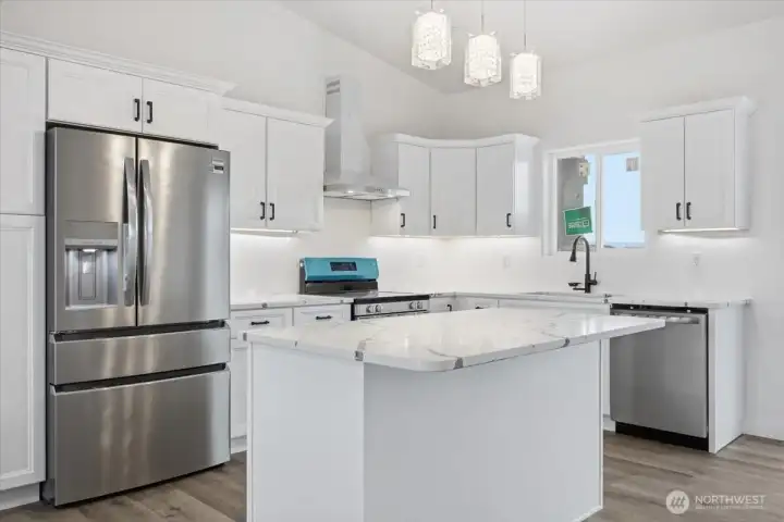 Welcome to the clear standout, and truly the only option, for buyers who want the best home in the neighborhood. This newly built, move-in-ready property sets a higher standard with a level of finish, design, and overall quality that simply doesn’t exist in competing homes nearby. Inside, you’ll find an open-concept layout with vaulted ceilings, abundant natural light, and wide-plank flooring that creates a clean, elevated feel throughout. The kitchen is a true centerpiece, featuring quartz countertops, a large island, stainless steel appliances, and crisp cabinetry designed for both everyday living and entertaining.