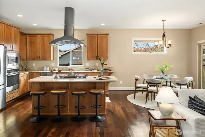Stunning single-level home with 3+ bedrooms in the sought after Wyncrest community on Auburn’s West Hill. Built in 2015, the home sits on a large corner lot with beautiful landscaping and southern exposure. High ceilings and an open-concept layout create a warm, spacious feel, making the home live larger than expected. Designed with entertaining in mind, the kitchen centers around an oversized island and has generous counter space and pantry storage. Brazilian hardwood flooring runs through the main living areas, with new carpet installed in March 2026. The primary bedroom is perfect for relaxing with a luxurious en suite bath. Enjoy the private fully fenced backyard and covered patio; great in all seasons. Other features include a gas fireplace, tankless hot water, heat pump/AC, an in-ground sprinkler system and oversized garage. In a walkable community with wide streets, sidewalks and parks. Easy access to commuter routes like 167 and I-5. This home was very lightly lived in and is in pristine condition.