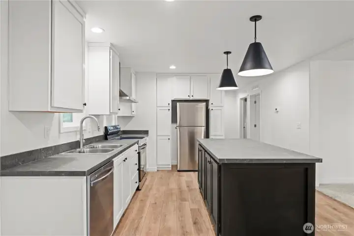 Large kitchen island has room for seating