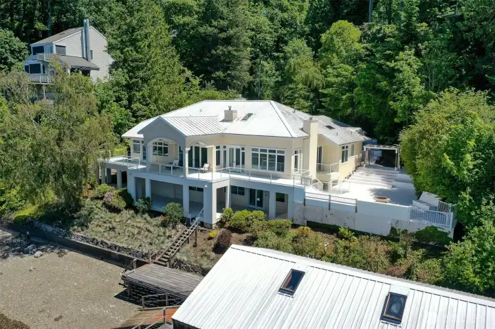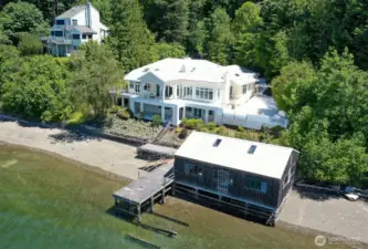 Rare Budd inlet salt waterfront home on 2.5 private acres perfectly located just 4 miles from downtown Olympia & all conveniences. This 4,033 sqft custom home offers a commanding unobstructed view of the Sound and the Olympics from every room. Starting with the grand port-cochè entrance, the home exudes understated elegance: custom furniture designed specifically for this home, primary bedroom w/huge luxurious en suite spa-inspired bath w/elegant soaking tub and expansive glass-enclosed shower & most amazing grand closet, high ceilings with crown molding, 3 fireplaces, including one in the primary bedroom, skylights, walls of windows, it's bright & airy. The main level floor plan allows for one level living for occupants challenged by the stairs. Finished daylight basement features 2 spacious bedrooms, rec room, bath, its own entry and, of course, the view, could easily be converted to separate apartment or be used by friends & paying guests. 1200 sq ft iconic boathouse w/utilities is perfect for hosting grand soirees or intimate sunset dinners. It has even been used as a wedding venue. 3 decks totaling 2,496 sqft, fire pit, outside shower, diving closet, garden space, fruit trees, wired for hot tub, & so much more. With 143 ft of easy access low bank shore, this is one of the widest waterfront lots in the area and an opportunity to witness nature at its finest with regular visits from whales, eagles, and sea otters. No HOA. Offered significantly under assessed value.