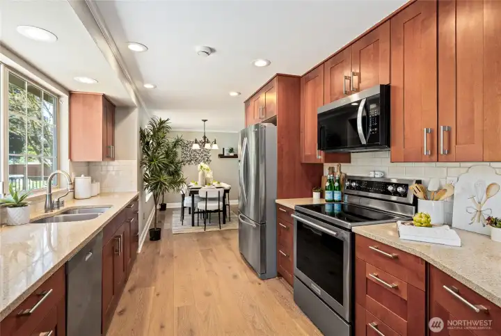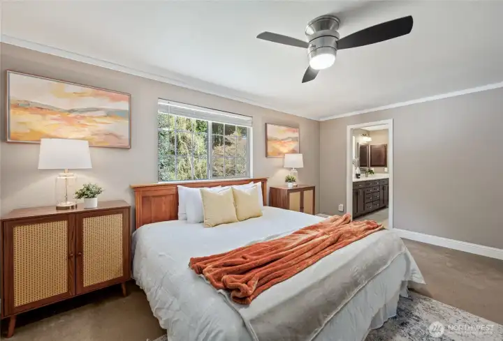 Welcome to this beautifully updated 4-bedroom, 2.5-bath home in the heart of Marysville! Situated on a spacious lot with mature landscaping and a meticulously manicured yard, this property offers the perfect blend of comfort, style, and outdoor living. Inside, you’ll find a thoughtfully updated kitchen designed for both everyday living and entertaining, along with a fully remodeled primary suite that provides a relaxing, private retreat. Elegant crown molding throughout the home, along with new interior doors and fresh paint, adds a refined, cohesive feel. French doors with screens allow you to step outside to enjoy the spacious deck—perfect for gatherings, morning coffee, or simply taking in the peaceful surroundings. Loads of natural lighting. Additional upgrades include air conditioning for year-round comfort and a new electrical panel for peace of mind. With its combination of modern updates, spacious layout, and beautifully maintained outdoor space, this home is truly move-in ready and waiting for its next owner to enjoy. Walking distance to Kellogg Marsh and Cedarcrest Schools. All appliances stay, including brand new washer and dryer.
