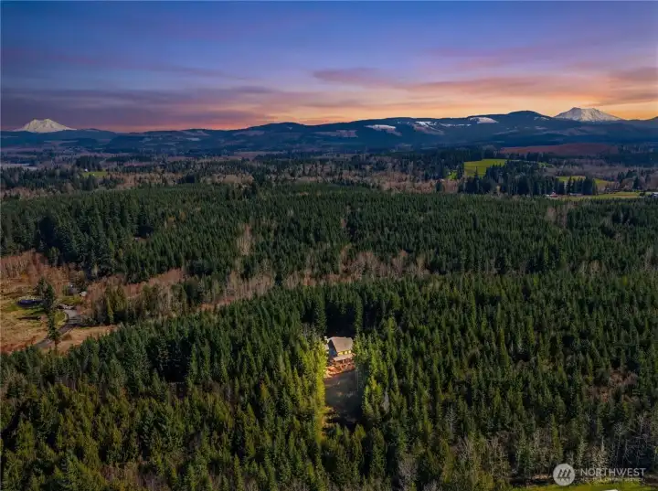 Nestled on 10 private acres in Toutle, this stunning 3,357 sq ft home—built in 2013—offers the perfect blend of space, comfort, and peaceful living. Surrounded by mature forest and located on a quiet dead-end street, you’ll enjoy exceptional privacy and serene natural surroundings.Step inside to a beautifully designed interior where soaring vaulted ceilings, rich eucalyptus wood floors, and expansive windows create a bright, airy, and truly impressive living space. The open-concept layout has a dining room, living room, and family room. The kitchen is equipped with quartz countertops, convection oven, and induction stovetop. The home offers 3 bedrooms, 3 bathrooms, and **two dedicated office spaces**—perfect for remote work, creative studios, or flexible living. The spacious primary suite is complete with beautiful windows, a private deck, and a spa-like bathroom featuring a soaking tub, large shower, and a generous walk-in closet.Outside, enjoy everything this property has to offer: a new deck, hot tub, fire pit, fruit pasture, greenhouse, and beautiful landscaping. A detached shop provides ample space for hobbies, storage, or projects.With a new 30-year roof and room to roam, this one-of-a-kind property offers the ideal balance of comfort, functionality, and rural charm.