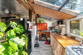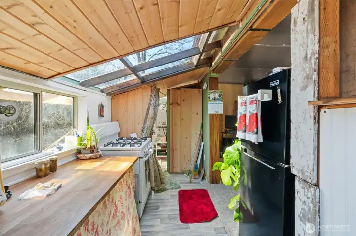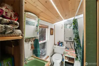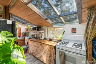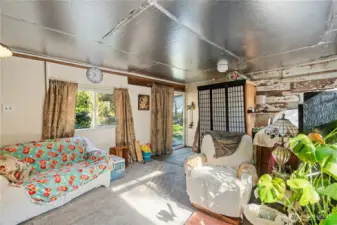 Studio cabin built in 2014 offering approximately 400 sq ft on a level 0.188 acre lot in Tokeland. Open studio layout with wood fireplace, compact kitchen with skylights, and full bath with on demand hot water. Metal roof and concrete flooring. Additional exterior work shed includes a half bath. Property features partially fenced yard with mature landscaping, garden space, fruit trees, and a small pond. Three RV hookups on site, with two providing water, power, and septic connections. Community water and septic system in place. A short walk to the ocean with deeded beach access nearby. Hear the ocean from the front door and take in the surrounding trees and established plantings. Off street parking. Sold as is.