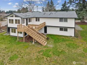 Move-in ready split-level home featuring new luxury vinyl plank flooring on the lower level. The home includes a remodeled lower-level bathroom with a walk-in shower, an updated kitchen, a brand-new furnace, and appliances and hot water tank that are just three years old. The upper level offers a primary bedroom with an attached bathroom, along with two additional well-sized bedrooms. The lower level includes a versatile bonus den, ideal for additional living space, a home office, or potential use as a rental or in-law suite. Enjoy a spacious property with lots of flowers and mature fruit trees, including apple, pear, and cherry—perfect for those who appreciate homegrown produce. The sunroom off the kitchen provides access to the back deck and showcases scenic territorial views overlooking the large yard and orchard. Additional features include an attached rear storage shed, a generous driveway with room for multiple vehicles or an RV, and convenient access to JBLM and major freeways!
