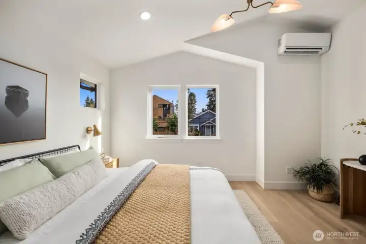 Welcome to this new collection of refined stand alone residential homes situated in the heart of this quiet Maple Leaf community featuring a cohesive blend of urban convenience and neighborhood charm. Enjoy easy walk's to local cafe's, pubs, restaurants, parks and transit. Private fenced courtyard leads to main entry where your greeted with an expression of cool modern home design and fine craftsmanship. Features include light-open concept living with high ceilings, beautiful hardwood floors, quartz countertops and generous walls of tile. Second floor features amazing Primary suite with vaulted ceilings, walk in closet and spa-like bath loaded with modern tile. Additionally, 3 generous bedrooms up with full bathroom and walk in laundry. Heating and cooling by energy efficient mini splits. Private garage with EV charging port. Secure and direct access to main floor living.