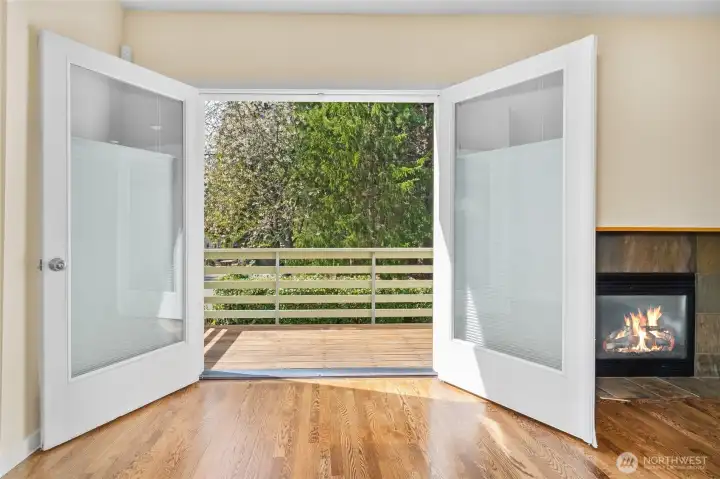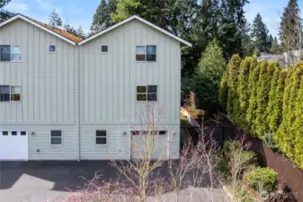 Welcome to this beautifully designed 3-bedroom, 3-bath Shoreline townhome offering three spacious levels of modern living. This home features an open-concept layout that seamlessly connects living, dining & kitchen areas, perfect for both everyday living & entertaining. Kitchen is equipped w/ stainless appliances, elegant granite countertops, ample cabinetry, and a convenient walk-in pantry for added storage. Enjoy the warmth & charm of hardwood floors throughout the light & bright main level, complemented by 9-foot ceilings that enhance the sense of space. The living area features a cozy gas fireplace, creating an inviting atmosphere year-round. Step outside onto the deck or relax in your private, gated yard with additional spacious outdoor sitting area—ideal for quiet mornings or evening gatherings. Upstairs, the bedrooms and main bath feature vaulted ceilings, and the primary suite is a true retreat, complete with its own gas fireplace and walk in closet. Situated on the lower level is a third bedroom which could also be used as a quiet/private home office work space, and a beautiful 3/4 bath. Additional highlights include a private garage with extra storage space, efficient radiant heat and a mini split A/C in the primary suite. Highly desirable location close to shopping, transit, and a variety of restaurants. This townhome blends comfort, functionality, and convenience in one exceptional package. No HOA dues! Some photos virtually staged.
