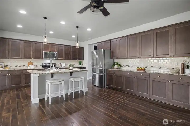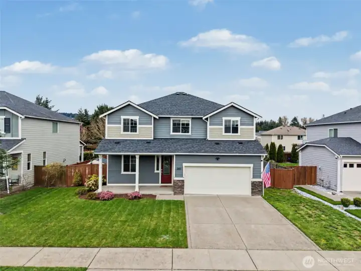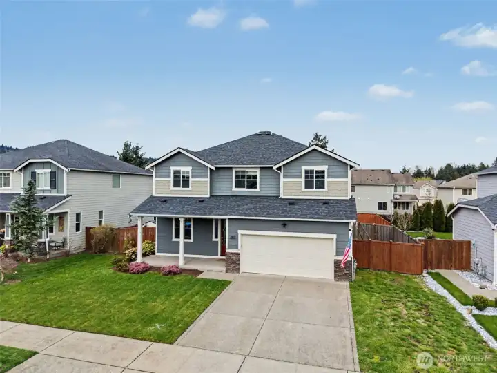 Welcome to this beautifully maintained Richmond American resale in a fantastic Orting location, offering the perfect blend of space, comfort, and flexibility. The open-concept layout is ideal for everyday living and entertaining, centered around a Stunning Kitchen with extra cabinetry, granite countertops, SS appliances, a large island, and walk-in pantry—all flowing seamlessly into the spacious Living room and bright Dining area filled with tons of natural light. The main floor also features a private office, perfect for working from home. Upstairs you’ll find a versatile loft, convenient laundry room, and a spacious primary suite with an oversized walk-in closet and relaxing 5-piece bath, plus three additional bedrooms. Enjoy laminate hardwood flooring, updated LED lighting, a 30-amp garage plug, and RV hookup for extra convenience. Step outside to the oversized covered patio—perfect for year-round entertaining—with a private gate leading directly to the neighborhood park with open grassy fields and basketball courts. Extra side parking and dedicated RV space make this home even more practical and hard to find. A truly exceptional home that combines space, light, and lifestyle—Welcome Home.