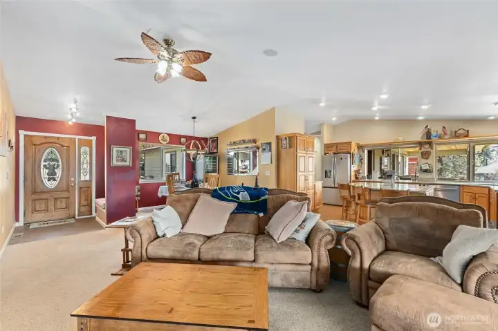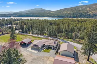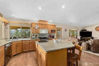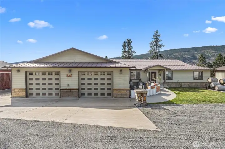 Welcome home to easy, one-level living in a thoughtfully cared-for property with room to live, work, and play. Cozy up by the natural gas fireplace or take in stunning mountain views from your kitchen. The main-floor primary bedroom ensures comfort and accessibility, while a bonus room adds flexibility for your lifestyle. Entertain with ease on the expansive covered patio, and rest easy knowing an automatic generator is in place. Need space? You'll love the huge three-bay shop, plus an additional parcel complete with a powered unfinished garage and greenhouse--perfect for projects or future expansion. All this, just around the corner from the Kettle Falls Marina--your gateway to recreation and relaxation.