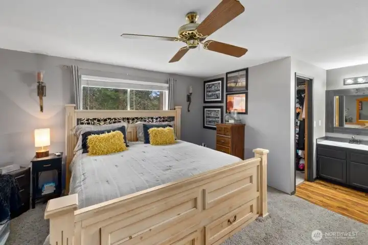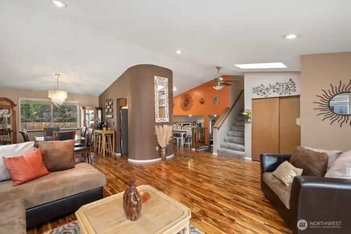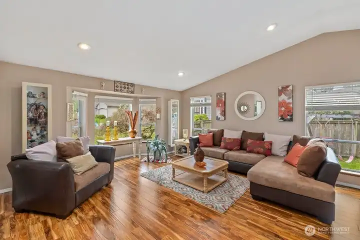 Welcome to this well-maintained tri-level home in a delightful cul-de-sac in Federal Way offering 1,920 sq ft of comfortable living space on a 7,203 sq ft lot. Built in 1988 and thoughtfully cared for, this 4-bedroom, 2.75-bath residence blends functional design with inviting updates throughout. Engineered hardwood, vinyl, and carpeted flooring create warmth across the living and family rooms, while large windows invite natural light into every level. The kitchen opens to the dining area and features ample cabinetry, modern appliances, and an easy flow for daily living and gatherings. Upstairs, the spacious primary suite includes an ensuite 5 piece bath, while additional bedrooms provide flexibility for work, guests, or hobbies. A lower-level family room offers a versatile retreat with room to relax or entertain plus the 4th bedroom and 3/4 bath. Efficient gas heating and central A/C ensure year-round comfort. Outside, the fully usable yard provides space for play, gardening, or outdoor enjoyment. The attached two-car garage adds convenience and storage plus laundry. Located near shopping, dining, parks, and commuter routes, this home combines practicality, comfort, and location in one appealing package. Mortgage savings may be available for buyers of this listing.