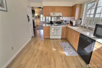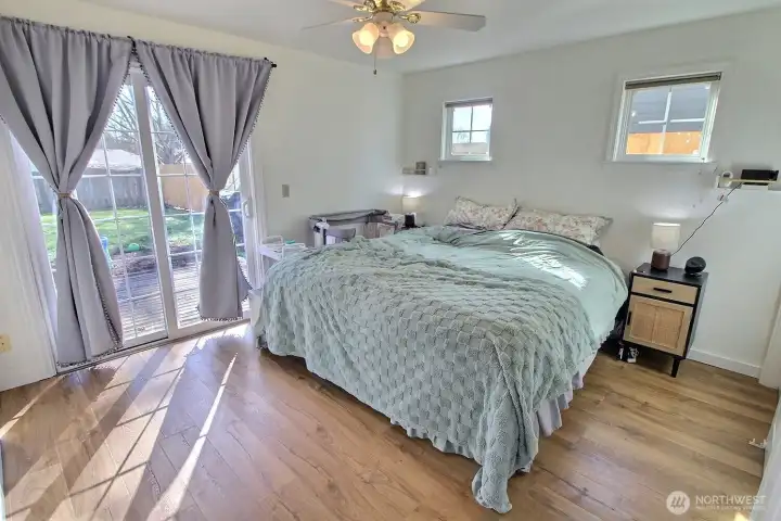 Fantastic, one level home in the sought-after Sun Meadows neighborhood! This must see home offers 2 bedrooms PLUS a den (3rd bedroom?) and 1.75 bathrooms. You'll love the very high, vaulted ceilings in the living room and den enhancing the bright and open floor plan. Spacious kitchen with oak cabinets, hardwood floors, large eating space with sliding door to the backyard and skylights. Primary bedroom with large closet, sliding door to the backyard as well and a three-quarter bathroom with a tiled shower surround. Main, full bathroom with tile tub surround. Other features include: Gas furnace with central air conditioning, gas water heater, ceiling fan, 2 car garage with opener, large backyard deck, fully fenced and level backyard, garden area, no HOA dues, covered porch, close to shopping, schools, Lake Meridian and other parks. You have found a great buy here!