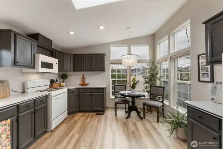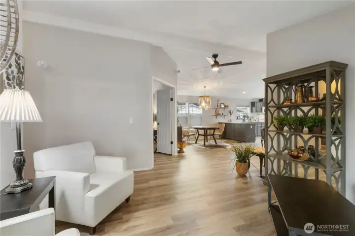 Welcome to this updated and inviting home in gated Park Lane 55+ community. This beautiful home also includes a newer roof (2022), new laminate hardwood flooring throughout, new hot water heater, new light fixtures, new high end blinds and newer interior paint. Updated large open kitchen with ample cupboards & counter space, breakfast bar, gas stove, skylight, eating area and all appliances included. Hall bath has new vanity with granite counters and new undermount faucet. Primary bedroom includes walk-in closet, private 5 piece bath with soaking tub and two sinks. Other features include: 2 car garage, vaulted ceilings, sprinkler system, landscaped yard including 3 raised beds and established Italian herb garden. Community includes clubhouse with kitchen, gym, large gathering area, library, and BBQ. RV parking is also available.