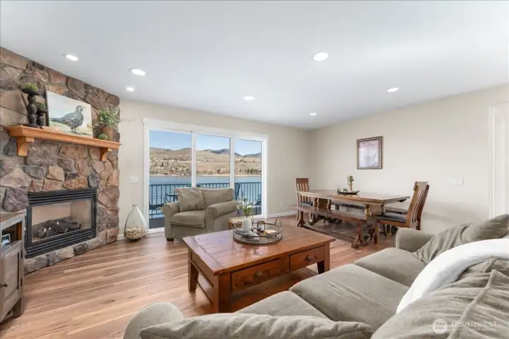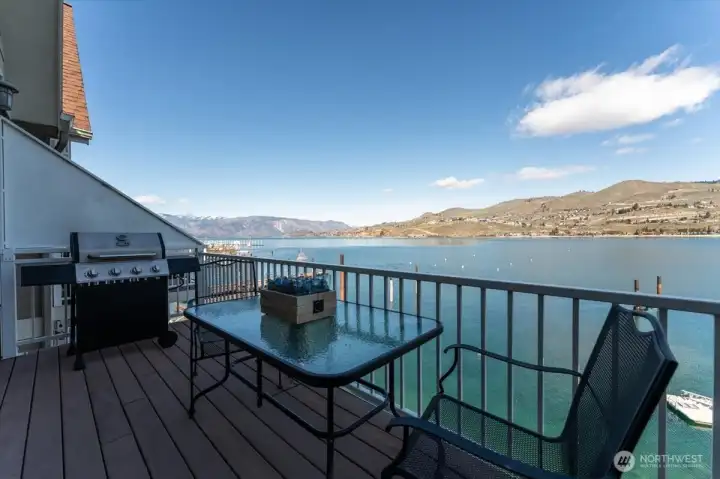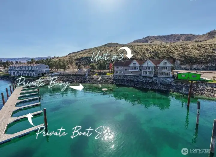 Discover unparalleled lakeside luxury in this rare, oversized waterfront condo, the largest in all of Chelan. Built directly over the crystal-clear waters of Lake Chelan, this exquisite 4-bed, 3.5-bath residence offers an unparalleled connection to the lake in an intimate building of only three units. Spacious and sophisticated, the home showcases multiple upgrades: premium flooring, fresh paint, new light fixtures, and frameless glass shower doors. Two primary bedrooms feature private en-suite bathrooms, while a propane fireplace adds cozy ambiance to the main living space. You'll savor breathtaking lake views from any of the three decks, perfect for taking in those pleasant Summer evenings. Outside, your oasis awaits: a brand-new dock with a dedicated boat slip, private boat buoy, a floating dock, and a private beach area right at your doorstep. This is lakeside living at its finest. Just steps from vibrant downtown Chelan via the new Lakeshore Trail that passes directly by the home, you’ll enjoy effortless access to restaurants, shops, and recreation. The well-maintained building boasts fresh paint and new ice-guard heat strips for year-round peace of mind. Directly across the lake from Don Morse Park, this turnkey masterpiece is perfectly positioned as the premier spot to watch the local fireworks light up the sky. Vacation rentals allowed, making this an enticing investment opportunity. Experience the ultimate Lake Chelan lifestyle in this one-of-a-kind luxury condo.