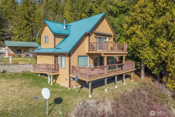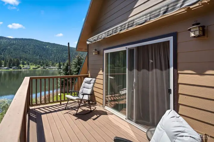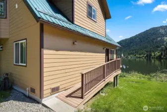 Incredible opportunity to own your home on the lake! Located on the southwest shore of beautiful Deep Lake, this modern 1924 sq ft home features living room wood stove, real wood floors, large well-appointed kitchen w/slate tile, dining area w/direct access to large, covered deck overlooking the lake, one bedroom on main, full bath on main, large upstairs bedroom w/vaulted ceilings, huge bath w/jetted tub and a balcony looking out over the lake. There's a 2-car garage, a drilled well, and the property extends up the hill behind the home for a total of 19.7 acres with a nearby creek that is your own natural water feature. Home is just minutes from public boat launch on NE corner of the Lake