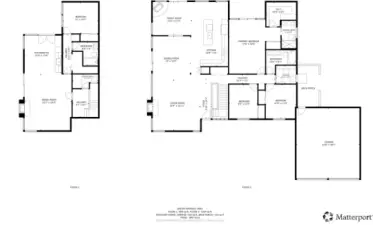Welcome to your private retreat! This stunning one-story, 4 bedroom, 2.75 bath home with a fully finished basement perfectly blends luxury and nature. The heart of the home is the updated eat-in kitchen, featuring soft close hickory cabinets and drawers, undercabinet lighting, quartz countertops, new appliances, and cozy heated floors. Relax in the upstairs family and great rooms, boasting rich hickory hardwoods, vaulted ceilings, and large windows that invite natural light inside. Even your laundry/mud room is on the main floor. Just one step down to the garage access.The primary suite offers a spa-like experience with a renovated bath, custom subway tile shower, and heated flooring. Easy access through new slider to your private deck. The lower level is a true multi-generational gem with a separate entrance, covered patio, 4th bedroom with a slider, full bath, LVP flooring, and a wood-burning fireplace. Sink and cabinets already in so 2nd kitchen could be an easy add! Great ADU potential. Lots of extra storage!Outside, enjoy a wraparound deck on a lightly treed lot bordering a greenbelt. The oversized 2-car garage includes a shop and ample floored storage above. A rare find!