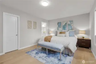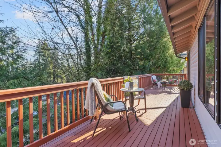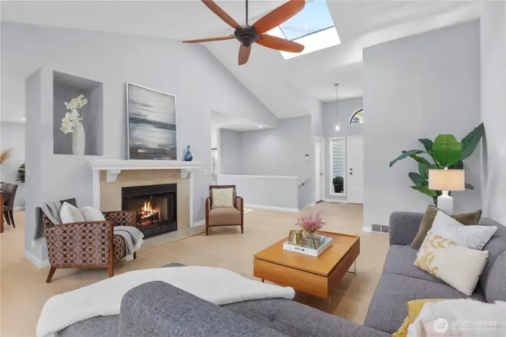 Welcome to Wildridge Park! This stunning, fully remodeled stand-alone home features 2 kitchens, 2 laundry rooms, and a separate-entry daylight basement—perfect for a mother-in-law suite. Enjoy soaring ceilings, A/C, skylights, and a gas fireplace in the bright, open living room. The chef’s kitchen boasts a quartz slab island, stainless steel appliances and has a slider glass door open to a large private deck. Luxury vinyl plank floors throughout. Spacious primary suite with walk-in closet, freestanding tub, and designer shower. A huge storge room in the basement. Bellevue Schools, easy I-405/I-90 access. Desired Bellevue School District; EZ access I405 & I90