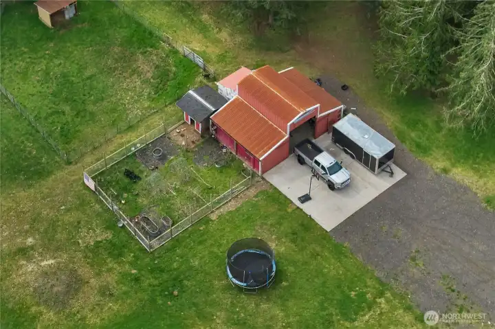 5+ acres out Delphi / Waddell Creek! 1,782 sq ft, 3 bed / 1.75 bath home, situated on two 2.75 parcels totaling 5.5 acres. Zoned RL1/2! Includes parcel #13603110600 & #13603110601 . On the first parcel, a gated entry leads to a homesteaders dream property with a massive barn and concrete slab for parking, overlooking a big, beautiful, fenced pasture/field. Fenced raised garden beds let you grow everything you can think of. Goat pens are set toward the back acreage and can be moved around. The second parcel includes a 2-bay shop with an additional finished room currently used as a salon, with plumbing and upgraded finishes on its own meter. More acreage behind it is a large dirt bike track. Use the full 5.5 acres or mow down the track and explore development potential for a second home! A second gated driveway is already cut in off Waddell Creek. Inside the home, the kitchen has warm wood cabinets with soft-close drawers, concrete countertops, a farmhouse sink and very nice herringbone backsplash. Bar seating at the island and updated lighting. 2 bonus rooms can be used as you see fit or opened back up into a massive open second living/dining room. The dining space easily fits a 6-person table and leads to the big living room. 3 bedrooms including a primary with walk-in closet, double sinks, and tiled shower ensuite. Second bath also has a tiled floor & bath surround. Mudroom/Laundry room with more storage space and a pantry. Great location in Olympia to live out your dreams.