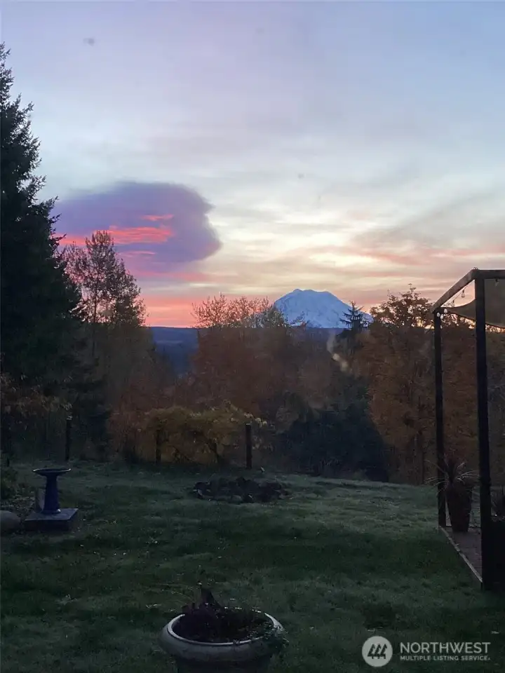 Majestic Mt Rainier is the show stopping view from this 3 Bd ,2 Ba ,home on 1.29 peaceful acreage in Graham . Private Hot tub , lush landscaping , designed backyard water feature , Bq deck, fire pit, dinning patio make the back yard an Oasis . Fruit producing Orchard and Garden ready for your green thumb .Charming out buildings for plenty of storage and equipment. The Home features lovely master bedroom with master bathroom featuring a garden view clawfoot tub. Skylights ,vaulted ceilings , new light fixtures elegant touches . Hobby Rec room , pellet stove , Plus Generator guarantees comfort . Kitchen Pantry , walk in closets . So much comfort and charm in this freshly updated 1994 wood sided Manufactured home. View & Price to SELL !