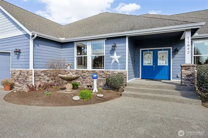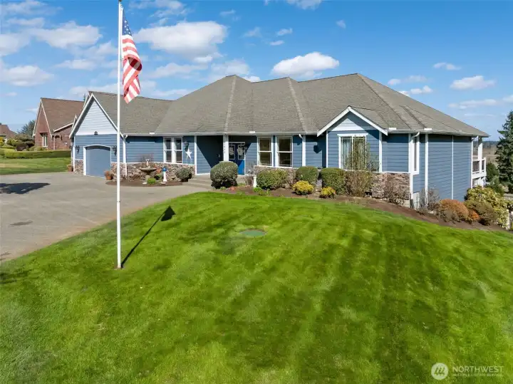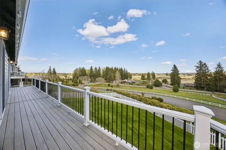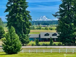 Located in the highly desirable Field of Dreams neighborhood, this exceptional corner-lot home captures stunning views of Mt. Rainier and offers an impressive blend of comfort, elegance, and functionality. Inside, the home showcases 9-foot ceilings, rich hardwood flooring wood-wrapped windows, and crown molding. Bright, open living spaces are filled with natural light, complemented by a formal dining room with custom finishes and detailed wainscoting, plus a private office with French doors. The well-appointed kitchen is a chef’s dream, featuring granite countertops, custom cabinetry with custom crown molding, under-cabinet lighting, full-height tile backsplash, peninsula with beadboard accents, pantry, gas stove, stainless range hood, and wine fridge- All appliances convey. Retreat to the luxurious primary suite offering a walk-in closet with California-style built-ins and a spa-inspired 5-piece bath complete with ceramic tile flooring, tile shower surround, soaking tub, bidet & TV that stays. Two spacious guest bedrooms plus two guest bathrooms with tile flooring, and a spacious laundry room with washer & dryer, utility sink included. Enjoy the expansive TimberTech Reserve wraparound deck and covered porch, along with a fully fenced backyard with garden beds ft. Concord grapes and yellow plums- plus RainBird sprinkler system in front and back yards. Extra-large, deep crawl space for additional storage & wired for generator. 3 car garage & AC complete this home!