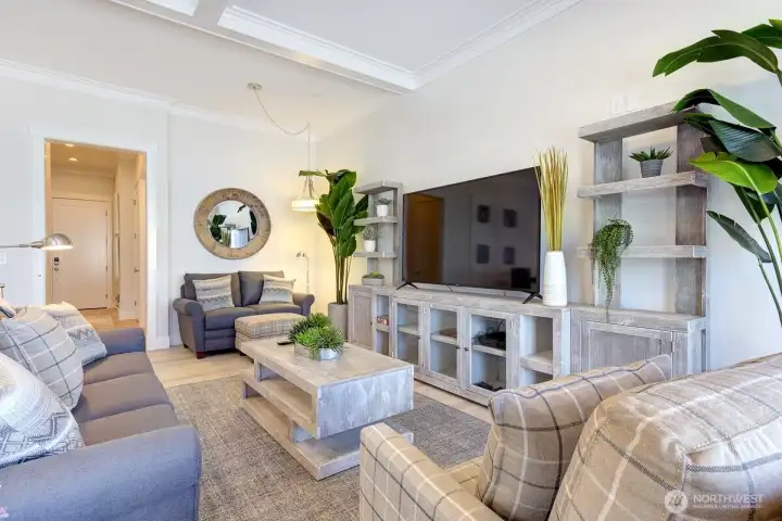 This premier condo, Pacific View, offers the ultimate worry-free Seabrook home experience. Located in Town Center, it combines the ease of urban living with a breathtaking view. Step inside to an open-concept, light-filled living area that leads out to an ocean-view balcony. The luxury residence features a primary bedroom and ensuite conveniently situated off the mudroom, plus an additional half bathroom. Premium finishes include crown molding and subway tile in the kitchen. For added convenience, this fully furnished unit boasts a private elevator and a rooftop patio. Enjoy easy access to town amenities and the beach right outside your door.